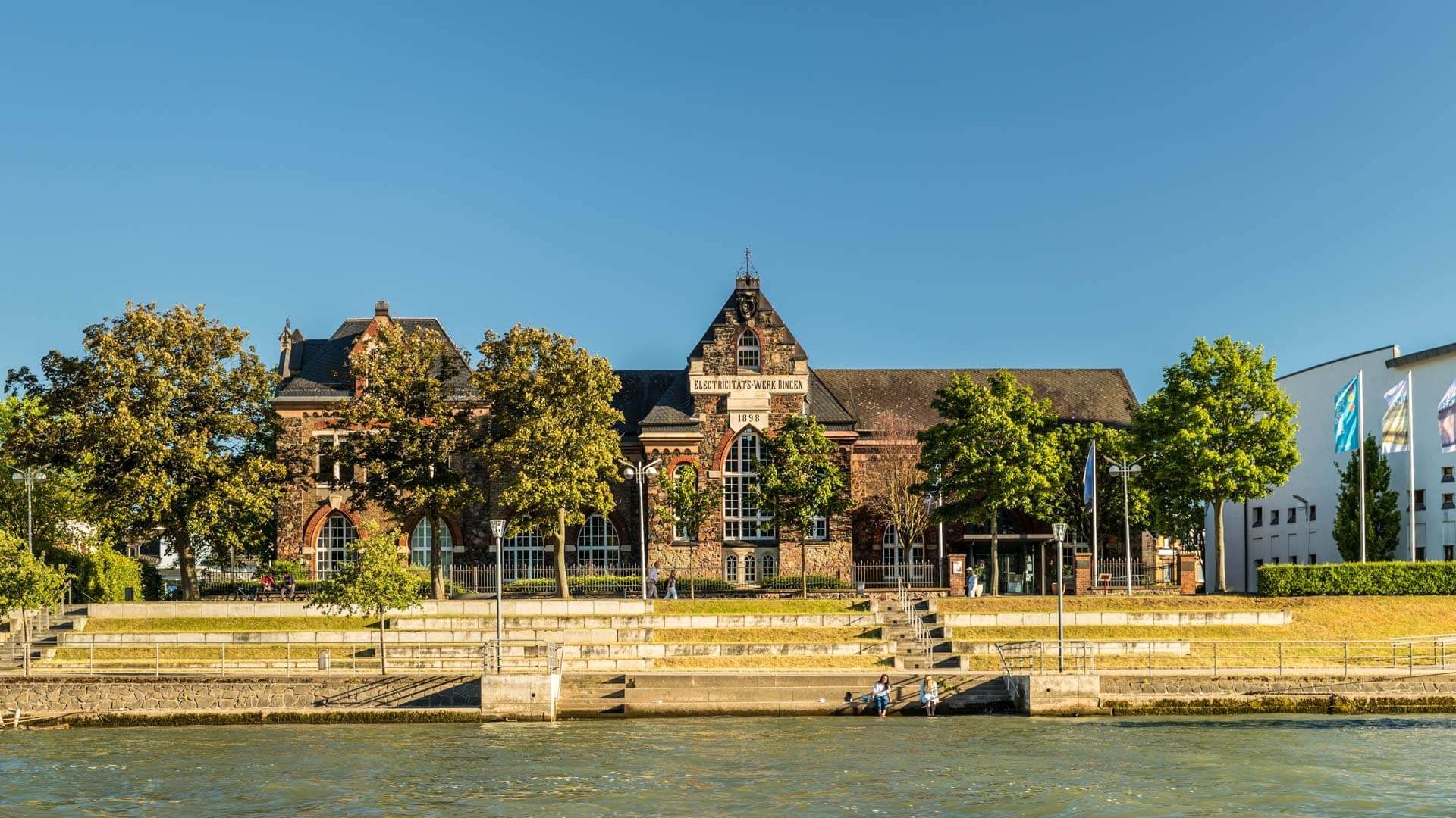 Spaziergang entlang des Rheinufers durch den Hindenburgpark und den Park am Mäuseturm, auf dem Weg laden drei Gastronomiebetriebe zum Verweilen und genießen direkt am Fluss ein.